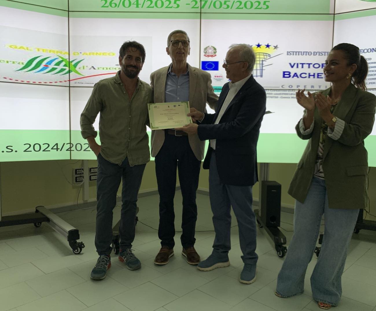 Presenti il Presidente GAL Cosimo Durante, il Dirigente Scolastico Giuseppe Manco, i docenti accompagnatori e gli assessori Marialuce Greco e Francesco Trono.